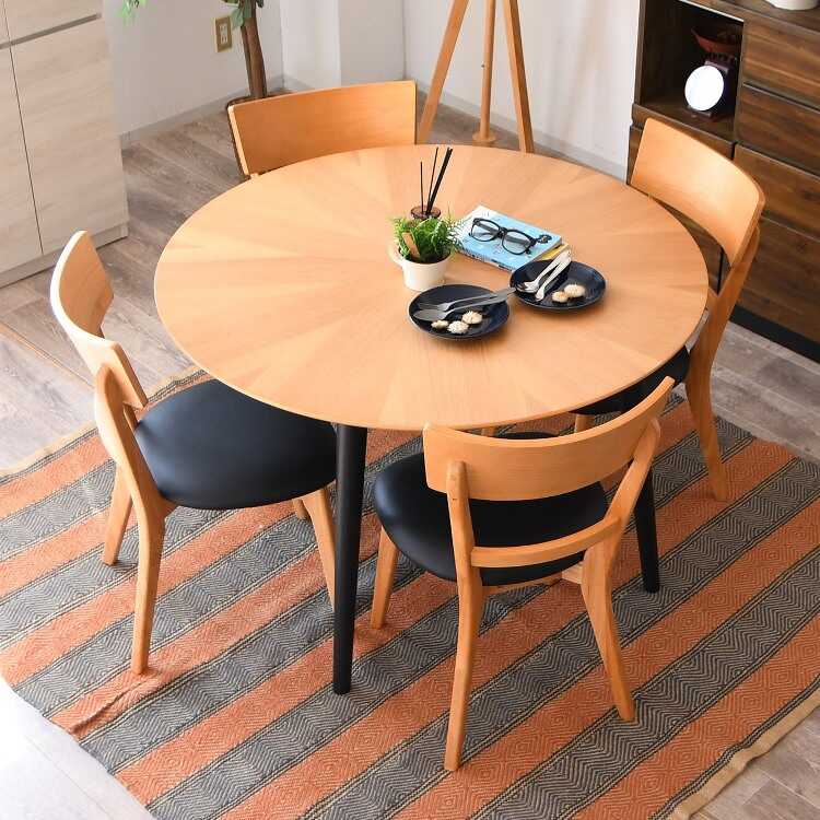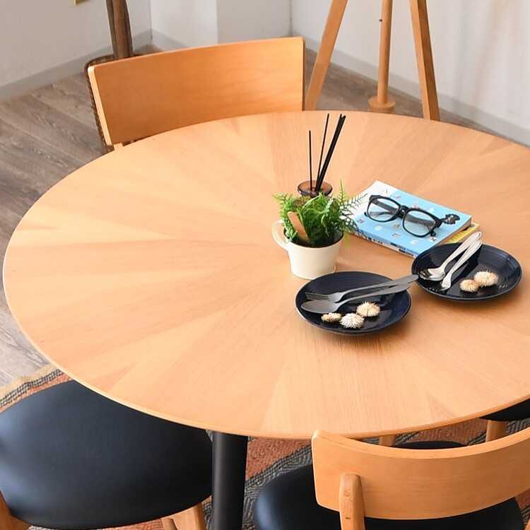 直径110cm・天然木オーク製の円形ダイニングテーブル(ナチュラル色)