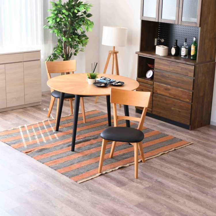 丸型ゆえにテーブル周辺の動線が確保できる為、サイズの割にお部屋の圧迫感が少ないのがメリット。