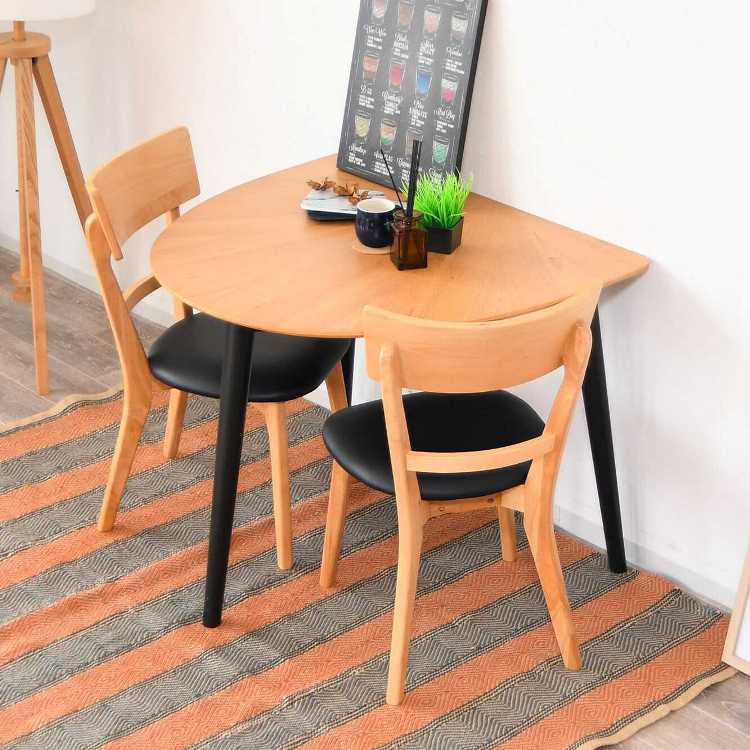 幅90cm・場所を無駄なく使える半円形食卓テーブル(天然木オーク製・ナチュラル色)