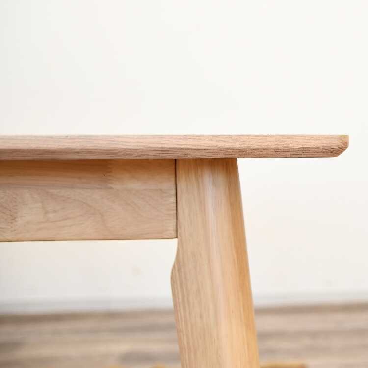 強度が高く、硬いので繊細な加工が難しいオーク材にもかかわらず、天板のフチは下方にカット入れてエッジの効いた加工を施しています。