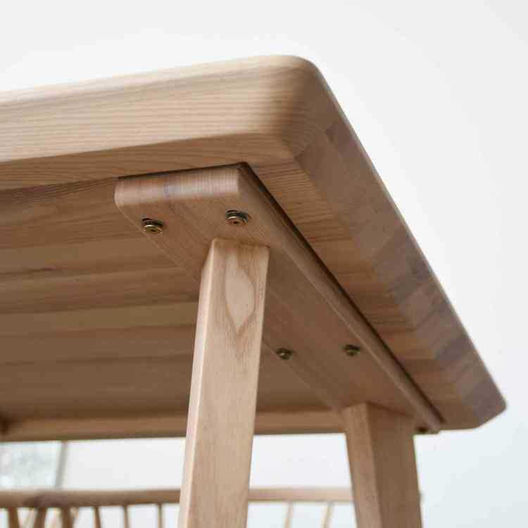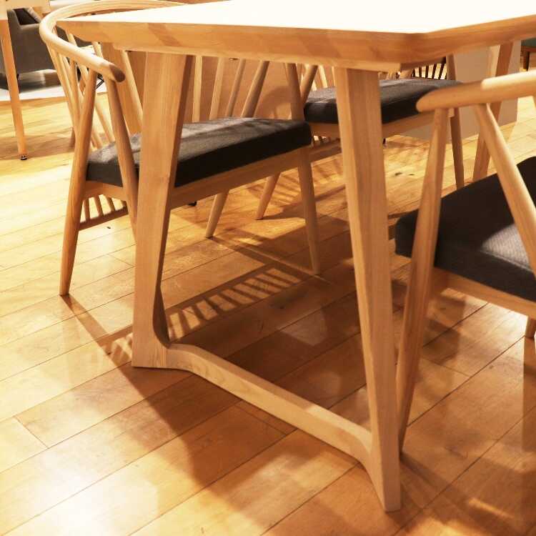 デザイン性を感じるお洒落な脚も天板と同じくアッシュ無垢材で作られた豪華さ。