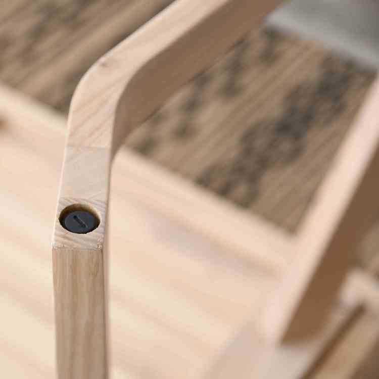 ホワイトとブラウンの2色展開、シリーズには同素材のアッシュで美しくフレームを加工したチェアもあります。