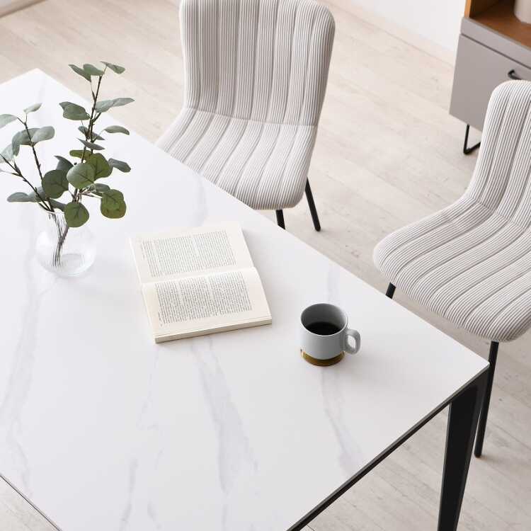 幅140cm・セラミック製の激安ダイニングテーブル(白大理石柄)