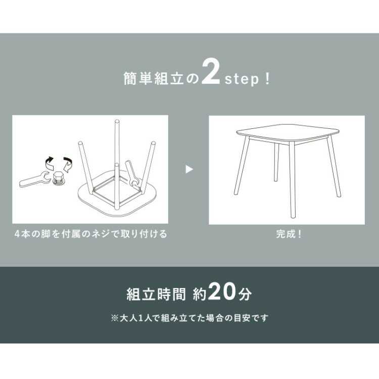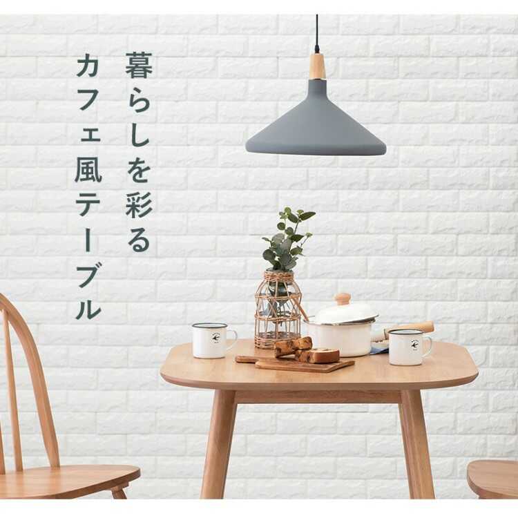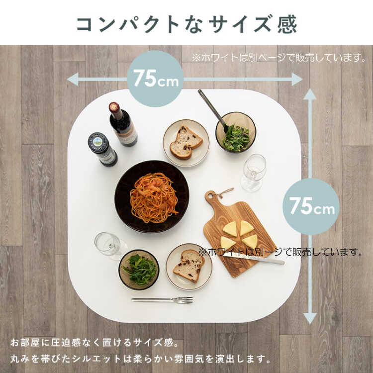 角が丸いカフェ風のダイニングテーブルは幅75cm×奥行75cmの正方形タイプ。