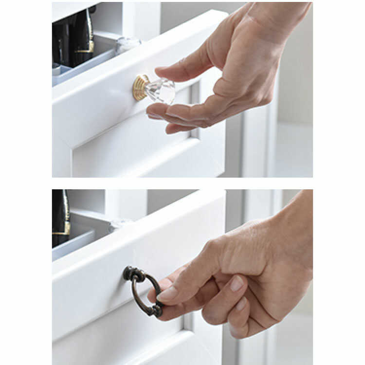 また、煌びやかなダイヤ型とアンティーク調なリング型と、タイプの違う2種類の取っ手が付属します。