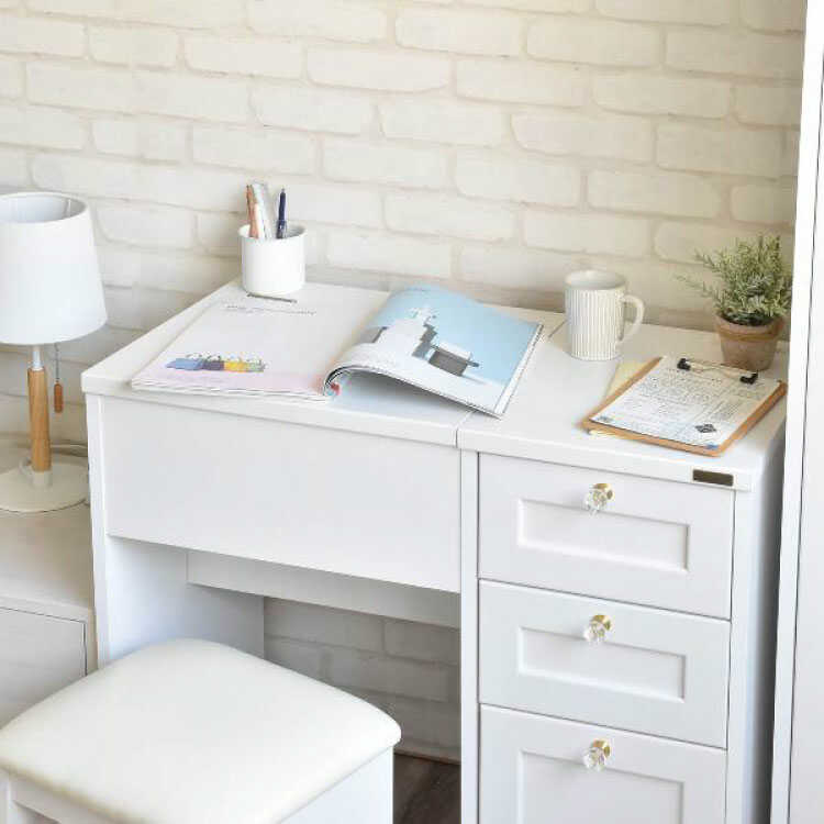また、メイクをしない時は天板を閉じて、勉強やPC作業のデスクとしても活躍します。