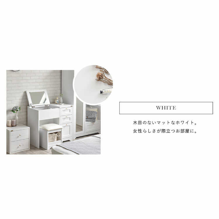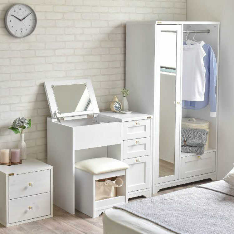 上品なホワイトカラーを基調とした北欧風のおしゃれなコンパクトドレッサー。