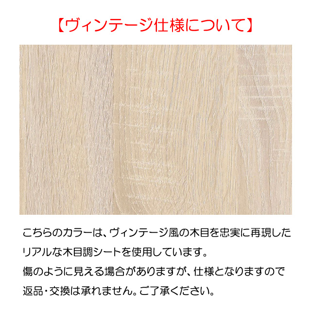 ※商品ごとに木目柄が異なります。また、ヴィンテージ調のシートを使用しているため、傷のように見える場合がありますが不良ではございません。見た目の仕上がり感の理由による返品・交換は承れませんのでご了承ください。