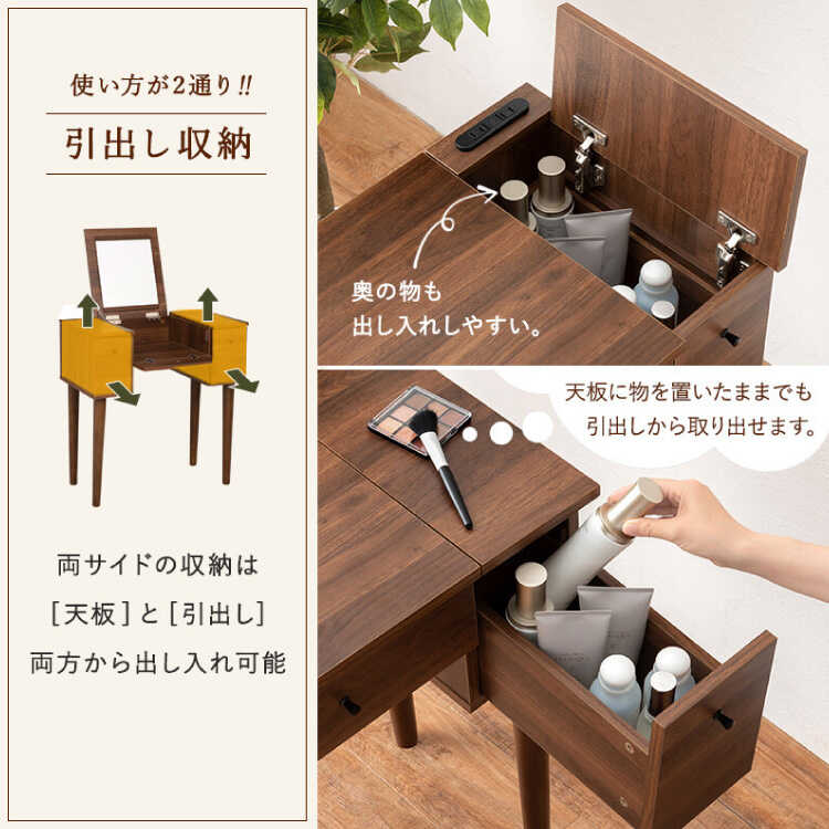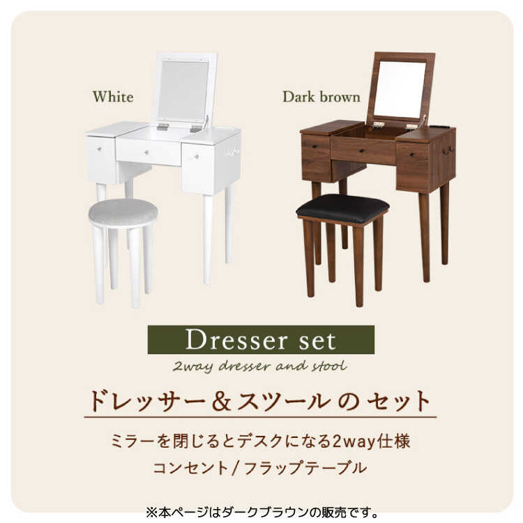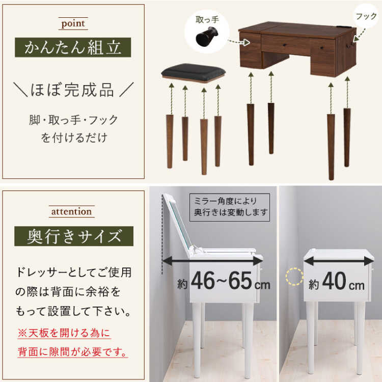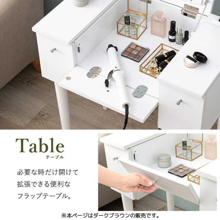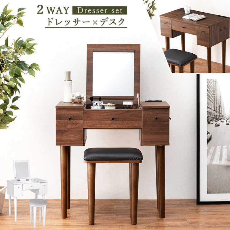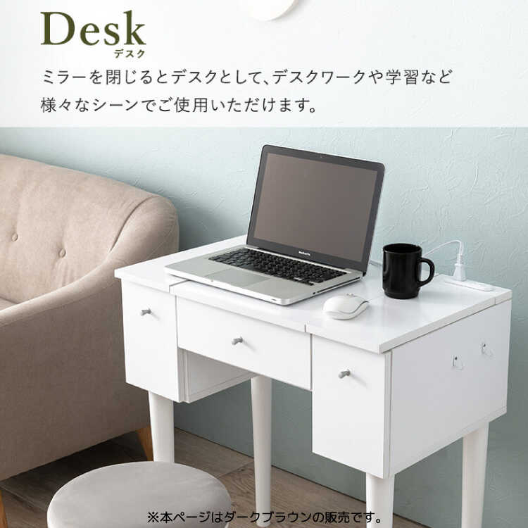 ドレッサーとしてはもちろん、ミラーを閉じてデスクとしても使用できる2WAY仕様です。