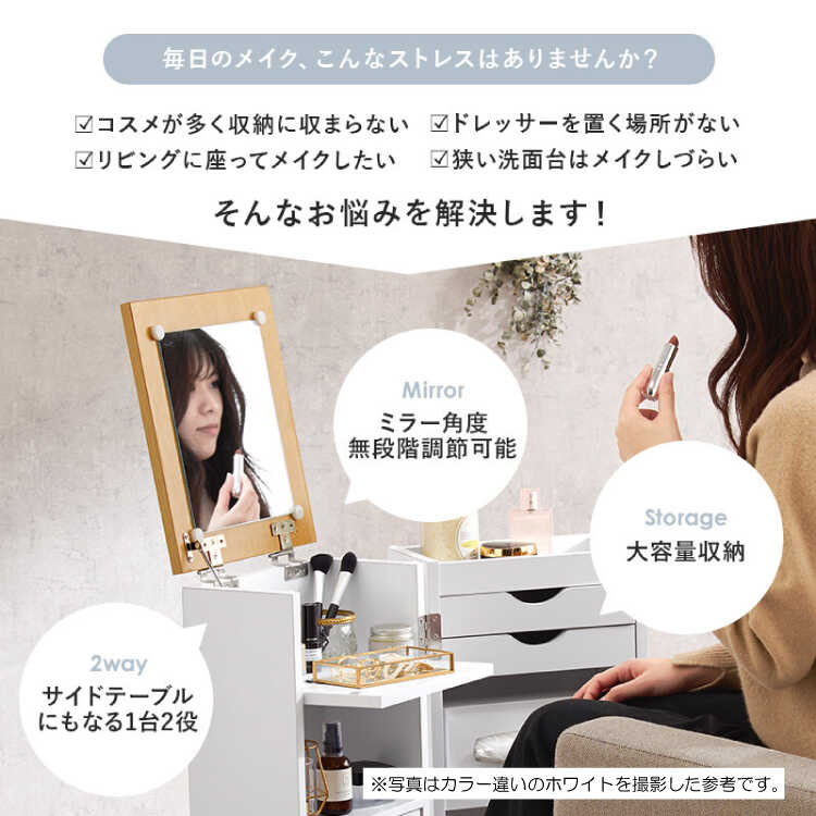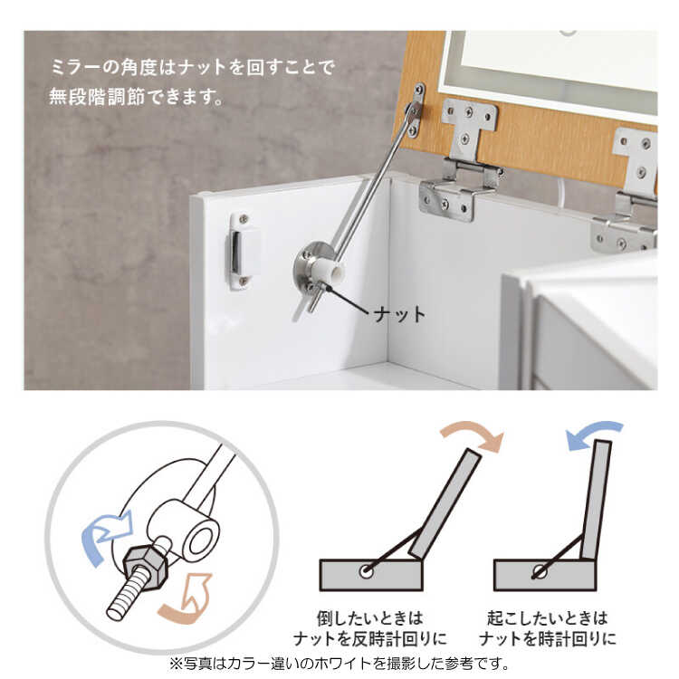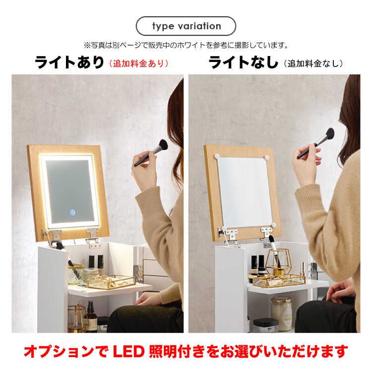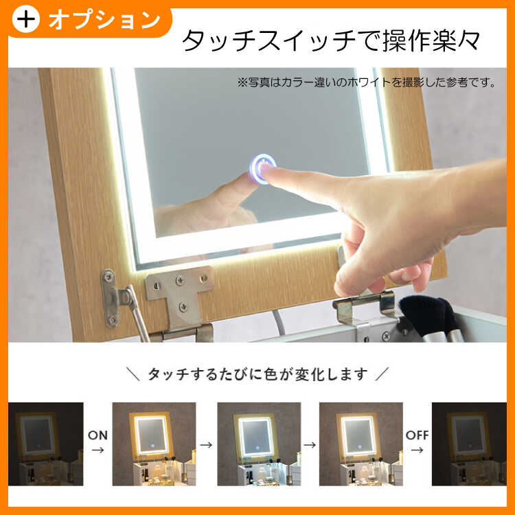 (オプション)LEDライト…3色光源&無段階調光機能注意事項 ※ドレッサー単品の販売です。小物は付属しません。
