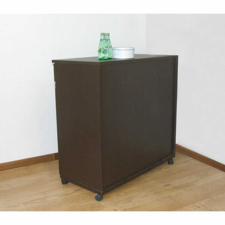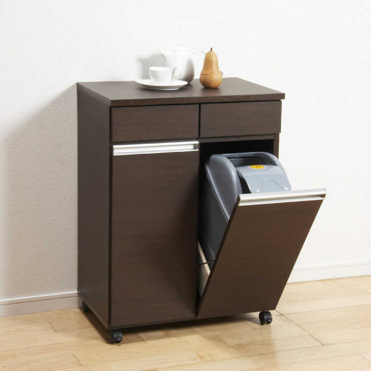 幅55cm・ダストボックス2個付き収納カウンター(ブラウン色/キャスター付き/完成品)