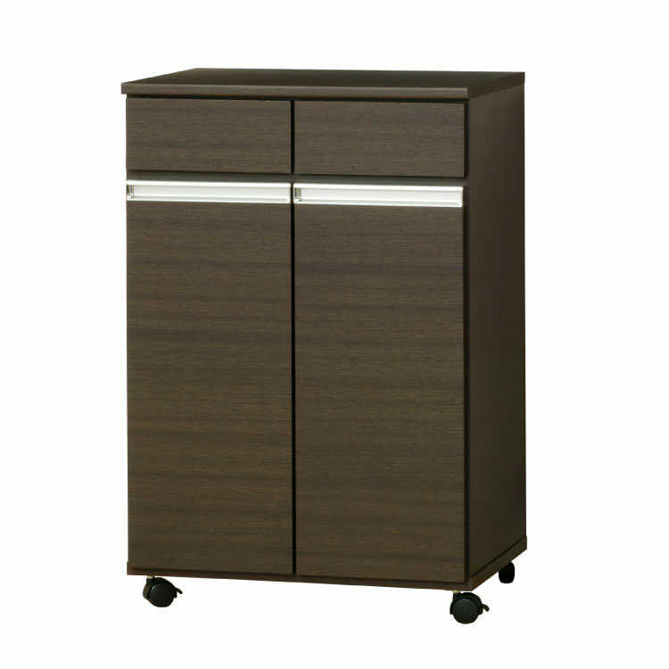 KI-2021 幅55cm・ダストボックス2個付き収納カウンター(ブラウン色/キャスター付き/完成品)