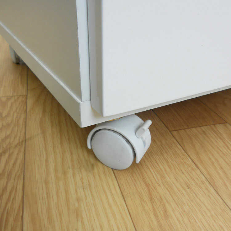 ダストボックス2個付き収納カウンターは脚先に便利なキャスター付き。