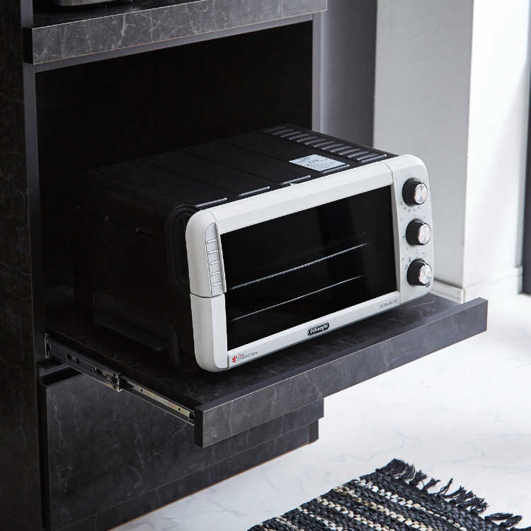 置き場所に困るレンジやトースターなどの家電を集約でき、キッチンがすっきりと片付きます。