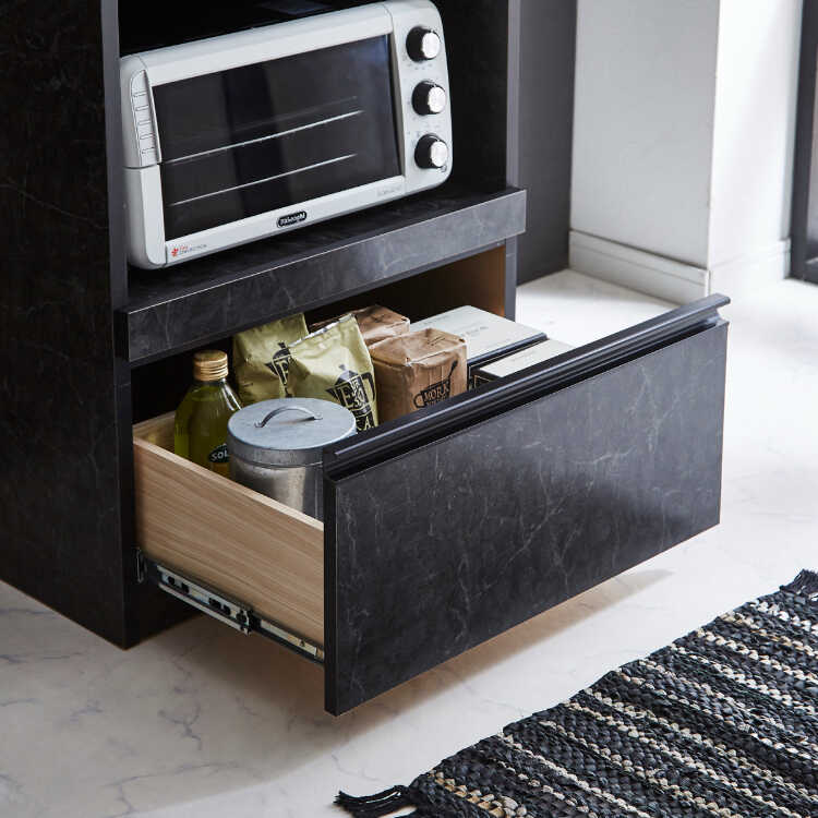 幅60cm・一人暮らしにおすすめのレンジ台(国産完成品・石目柄ブラック黒)