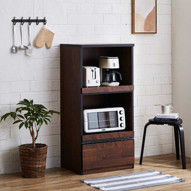 KI-2090 幅60cm・ワンルームにおすすめのレンジ台(日本製完成品・ウォールナット柄)