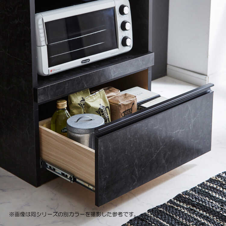 耐荷重(天板)約30kg(スライドテーブル)約15kg(引出し)約15kg注意事項 ※ウォールナット柄レンジ台単品の販売です。小物等は付属しません。