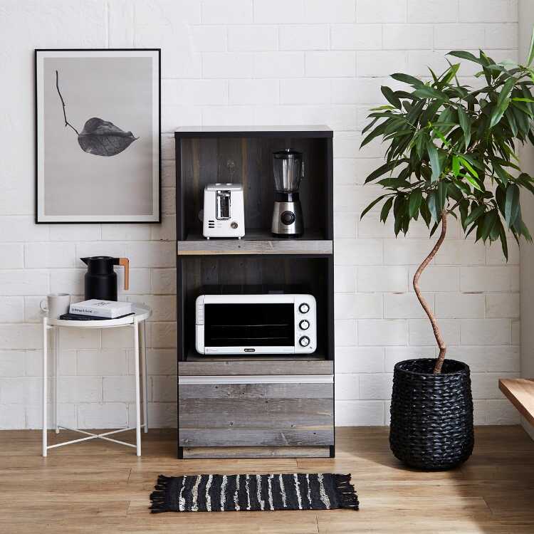 ワンルームのキッチンにぴったりなヴィンテージ風レンジ台は、組立が苦手な方でも安心な完成品のお届けです。
