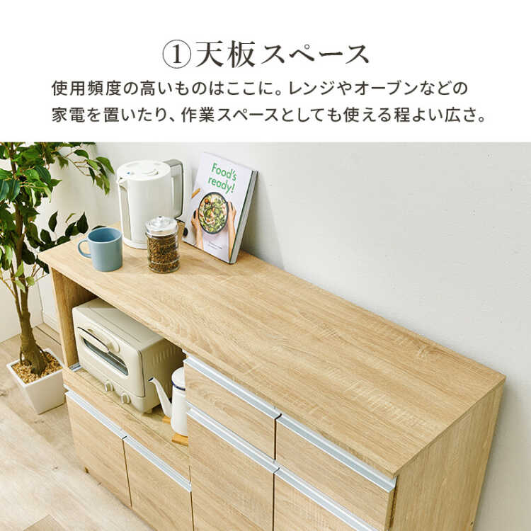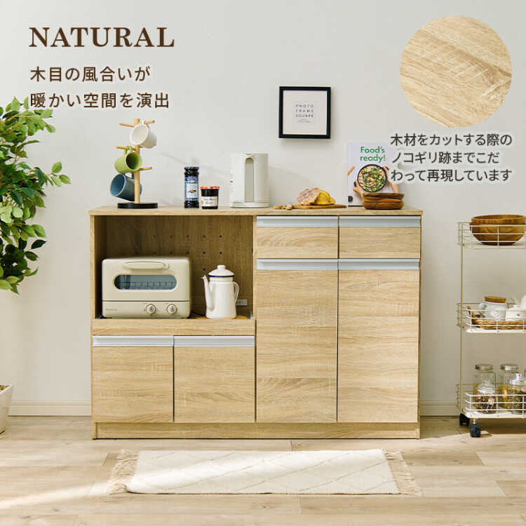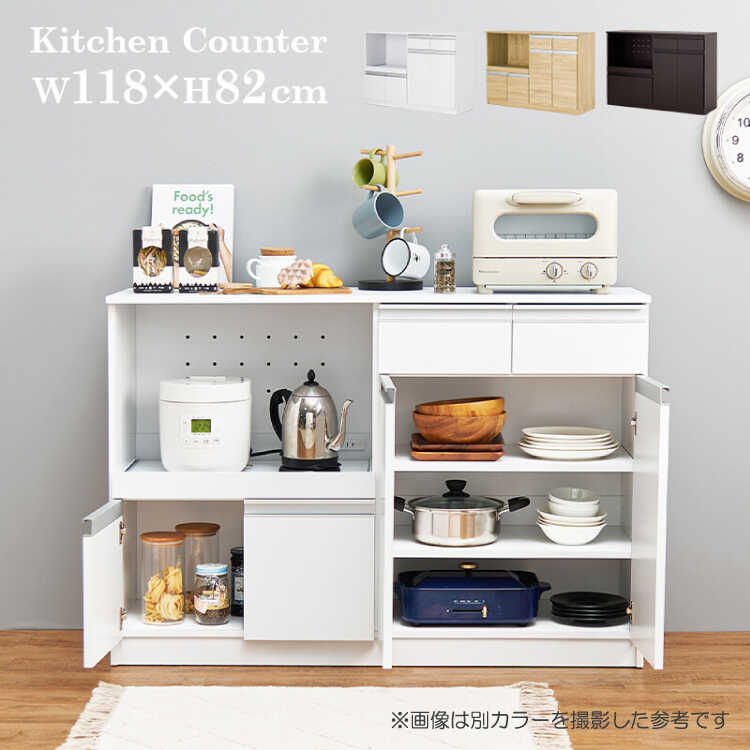幅118cm・ワイドで奥行スリムな激安キッチンカウンター(北欧ナチュラル色)