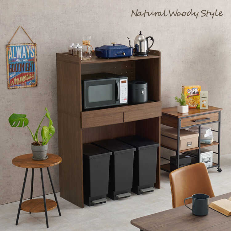 幅88cm・多目的に使えるオープンなレンジ台(ブラウン色)