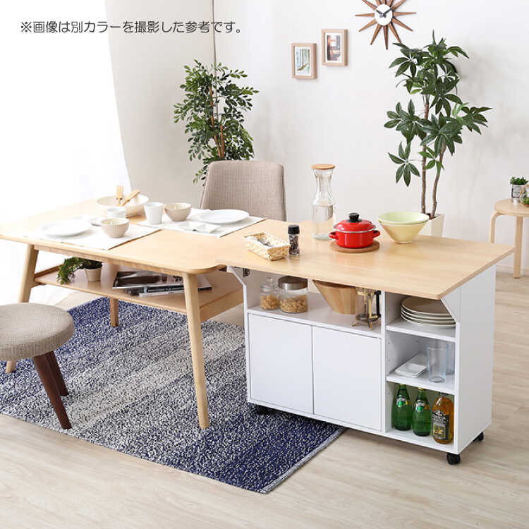 ダイニングからキッチンへと移動が便利なキャスター付きです。簡単に移動できるのでレイアウトの幅が広がり、気軽にお部屋をイメージチェンジできます。また、お掃除の際もスムーズに移動ができて便利です。本体部分はオープン棚×2と扉収納が設けられているので、キッチンやダイニング周りの小物をたっぷり収納でき、スッキリとしたインテリア空間を演出します。