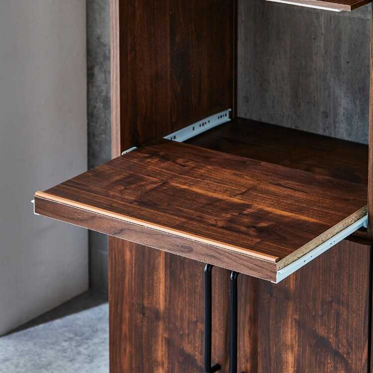 下段のオープン棚はスライドレールが付いているので、炊飯器の蒸気対策にぴったりです。