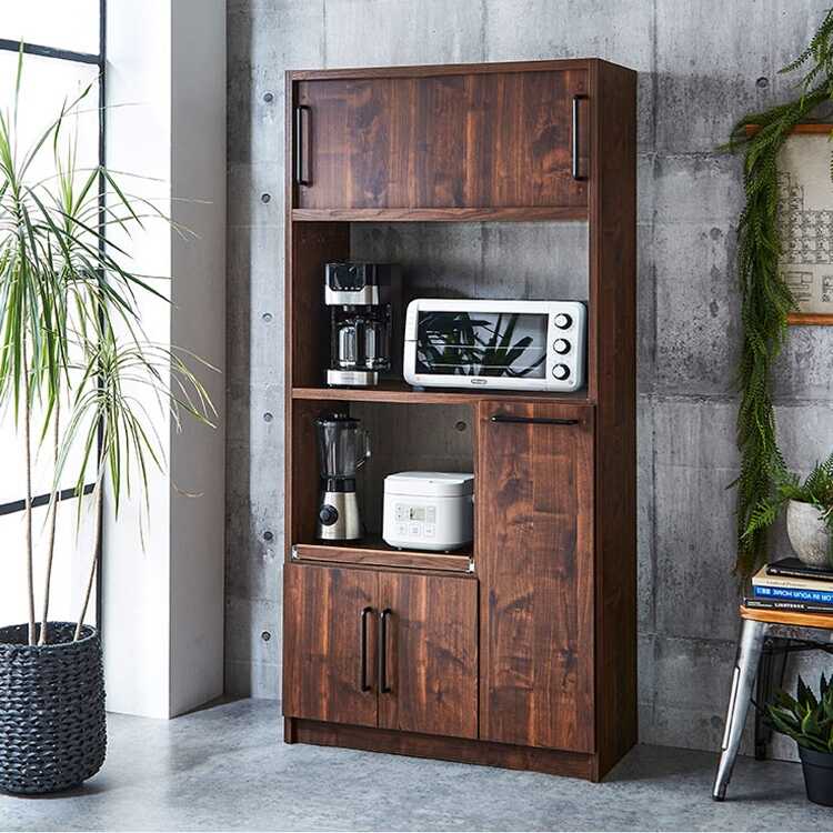 スタイリッシュにレイアウトしていただける完成品の食器棚は、幅83.5cmと様々なキッチンに合わせやすい丁度良い大きさ。