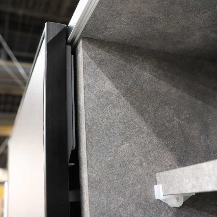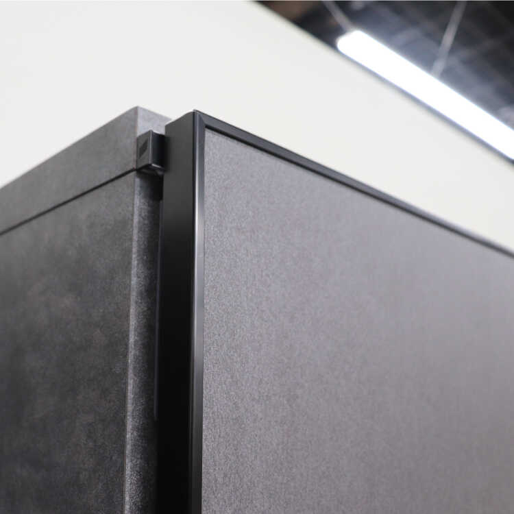 扉のフレームはブラックのスチール製で、開閉の衝撃からしっかり守ってくれます。