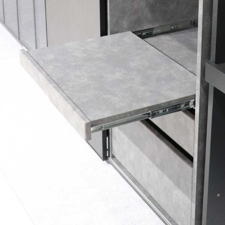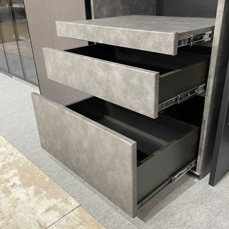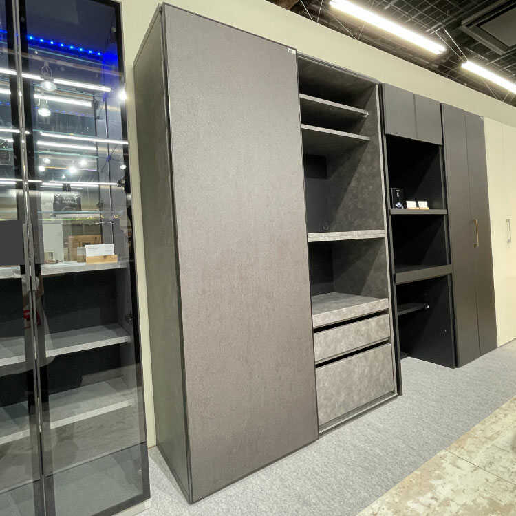 スライド扉はドイツのヘティヒ社製のスライドレールを採用しており、横幅のある大きな扉でもスムーズな移動が可能です。