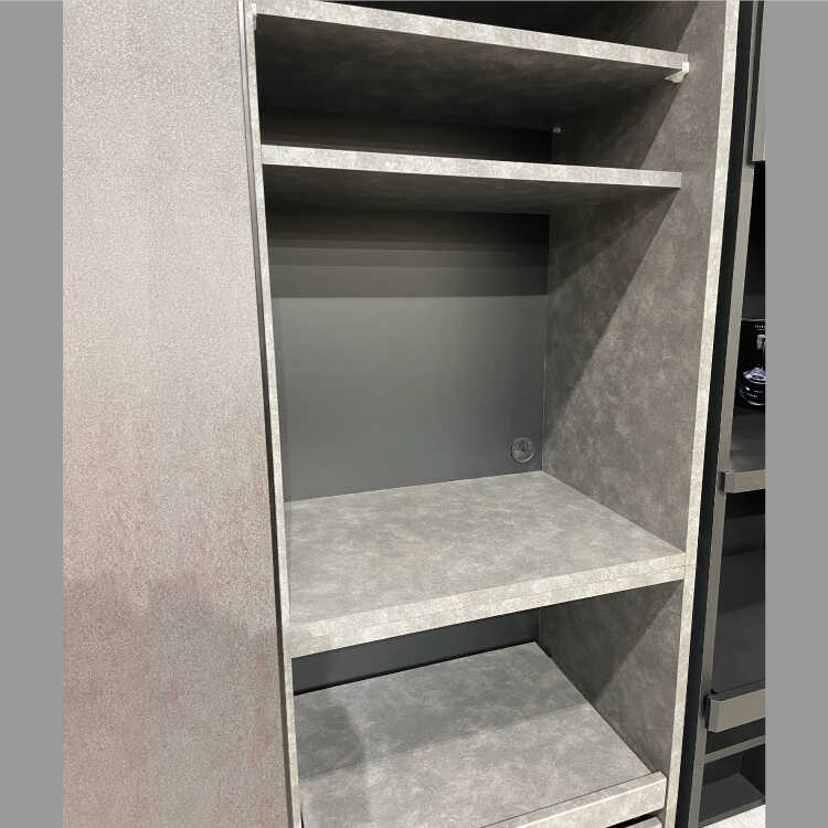 レンジ収納スペースは背面にコード用のダクト孔を1ケ所配置。