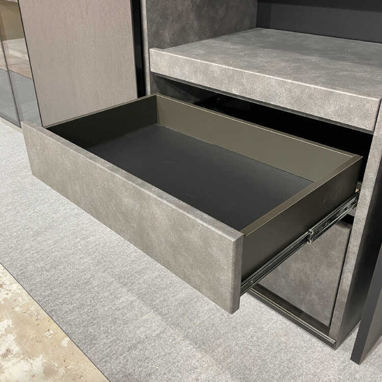 仕様補足 ドイツ・ヘティヒ社製レール使用、マグネットボード(扉)、三段フルスライドレール 注意事項 ※メーカーの色設定は「ブラック」ですが、実際にはダークグレーのような色合いです。