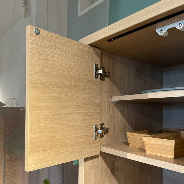 本体は木目が綺麗なナチュラル色で、扉の模様がアクセントとなって上品な雰囲気に仕上がっています。