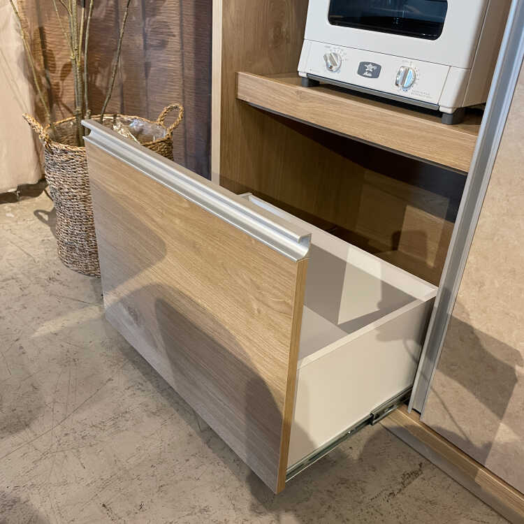 ④引出し…深さのある引出しなので、ストック品やキッチン用品の収納に便利