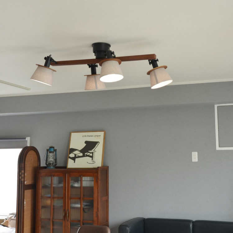 寝室に嬉しいオシャレなスポット型4灯シーリングライト