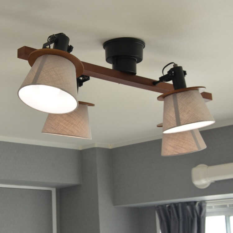 明るさ調整できるプルスイッチが付いた、スポットライト型4灯シーリングライトが寝室におすすめ。
