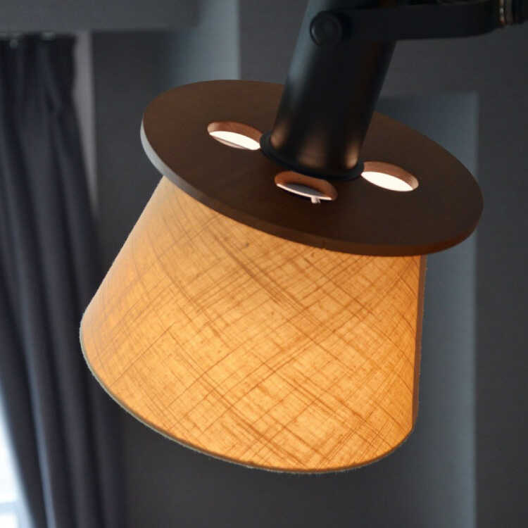電球を覆うスポットシェードの素材に布製を採用しました。
