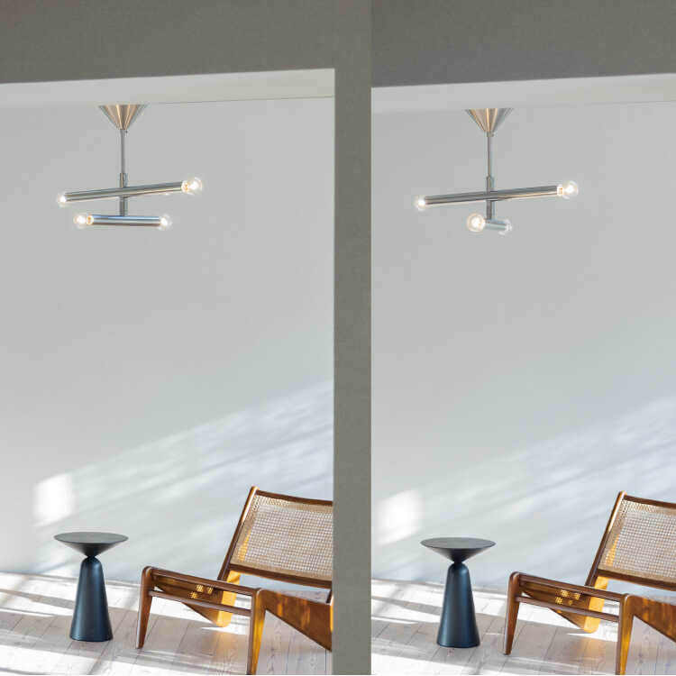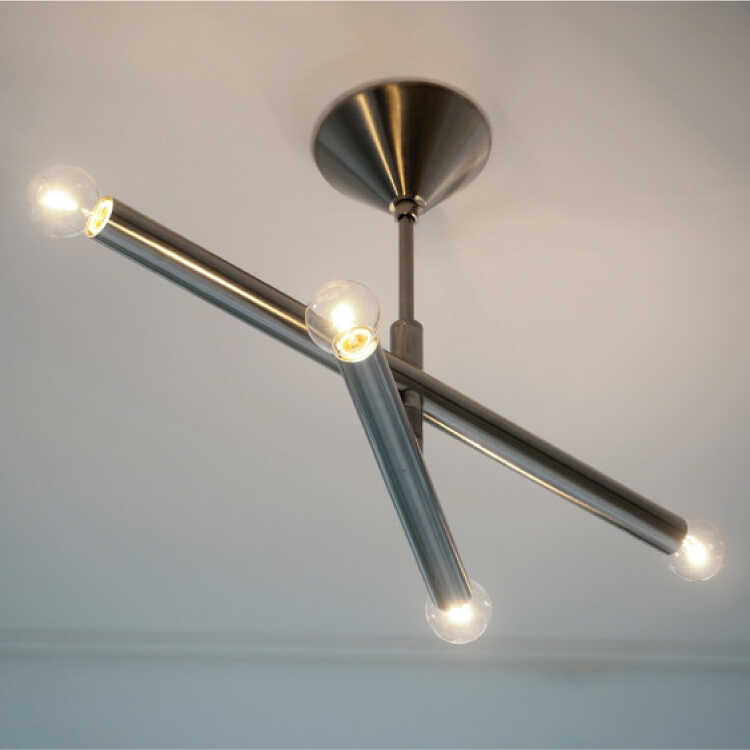交差させる角度によってフォルムが変えられるので飽きがきにくい照明です。