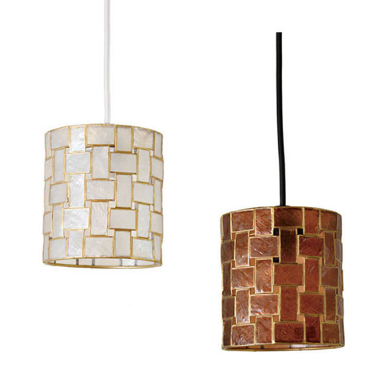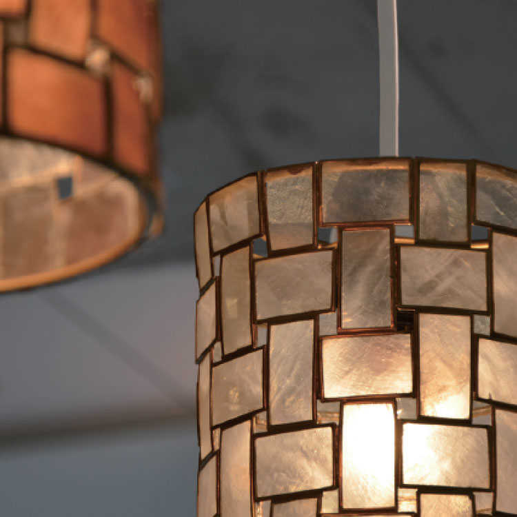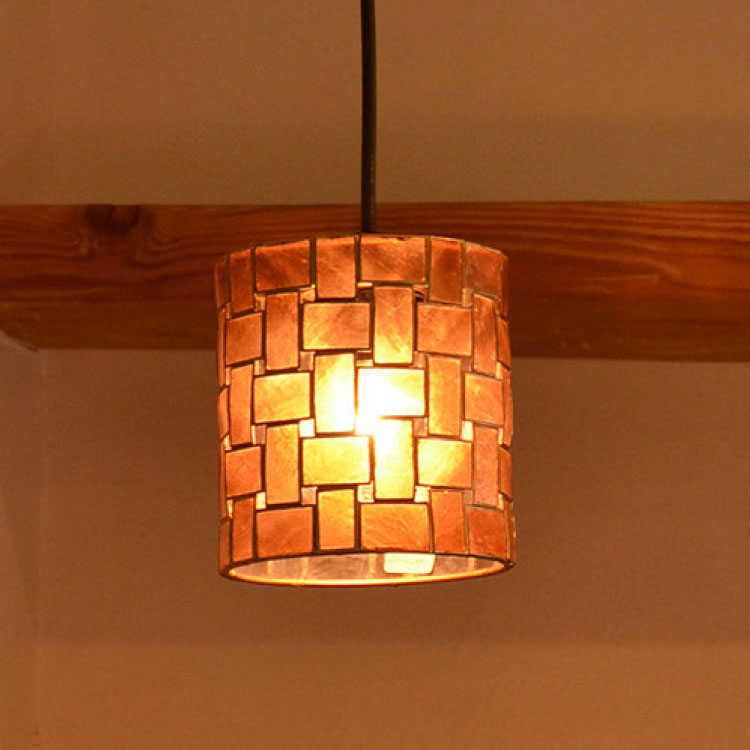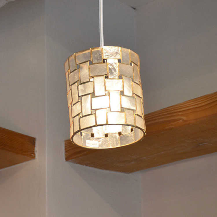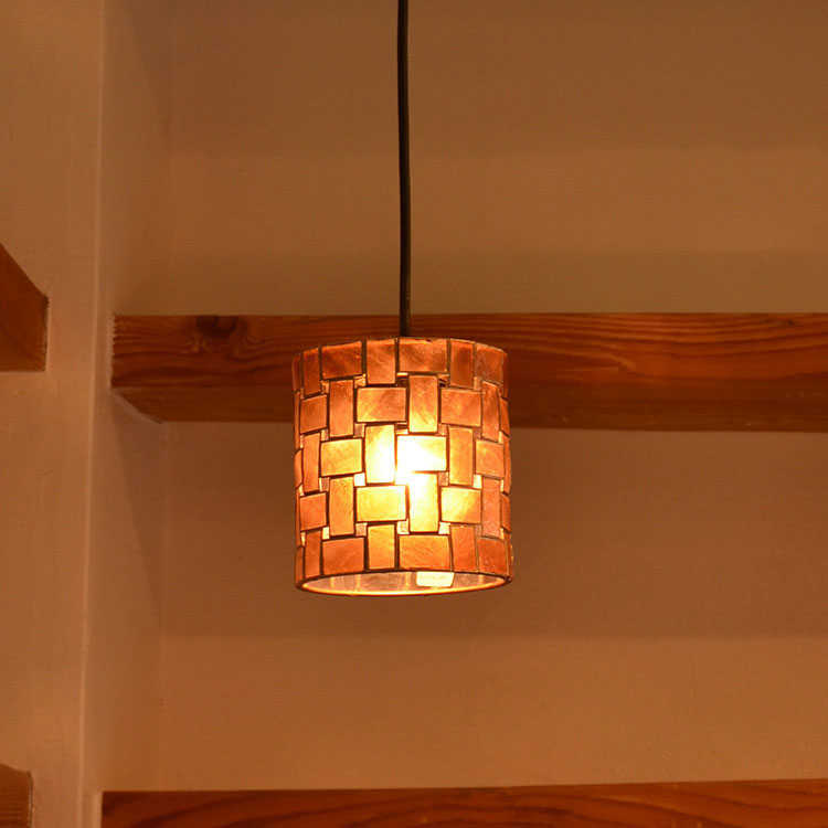 カピス貝を使用したレトロテイストなペンダントライト。