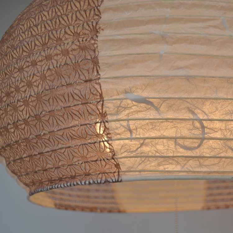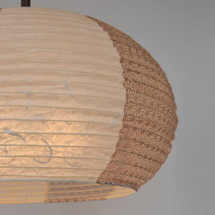 中に繊維が入っているベージュ系の和紙と、縁起のよい麻葉柄のブラウン和紙を交互に張り合わせたデザインで、お洒落且つ上品な空間を演出してくれます。