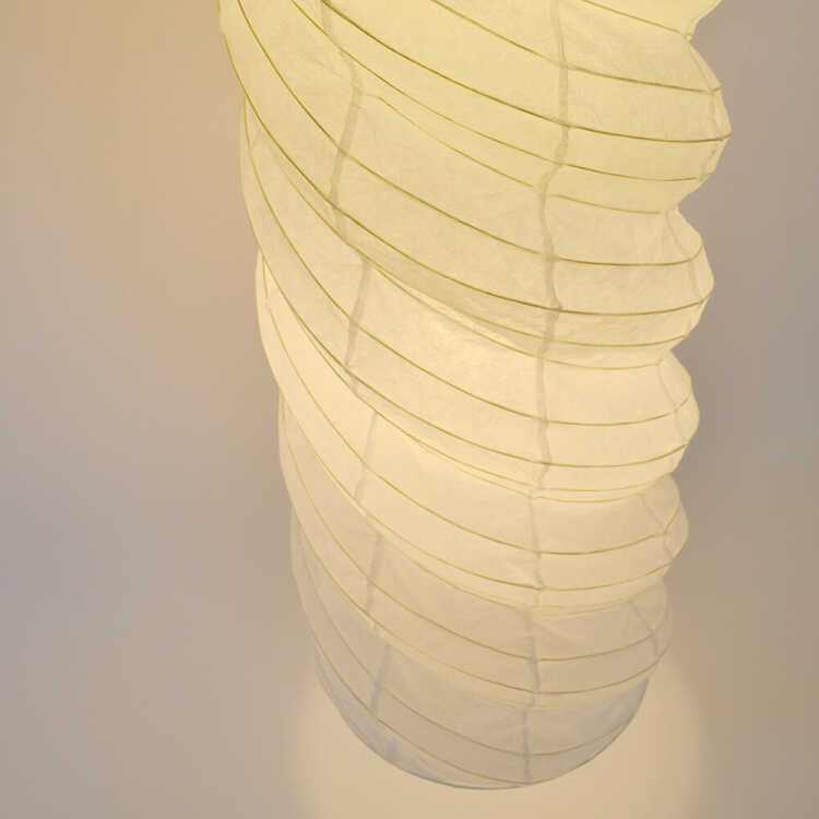 柔らかなデザインの和紙シェードと迫力のあるサイズ感で点灯時はもちろん、消灯時も存在感を放ち、ハイセンスな空間を演出してくれます。