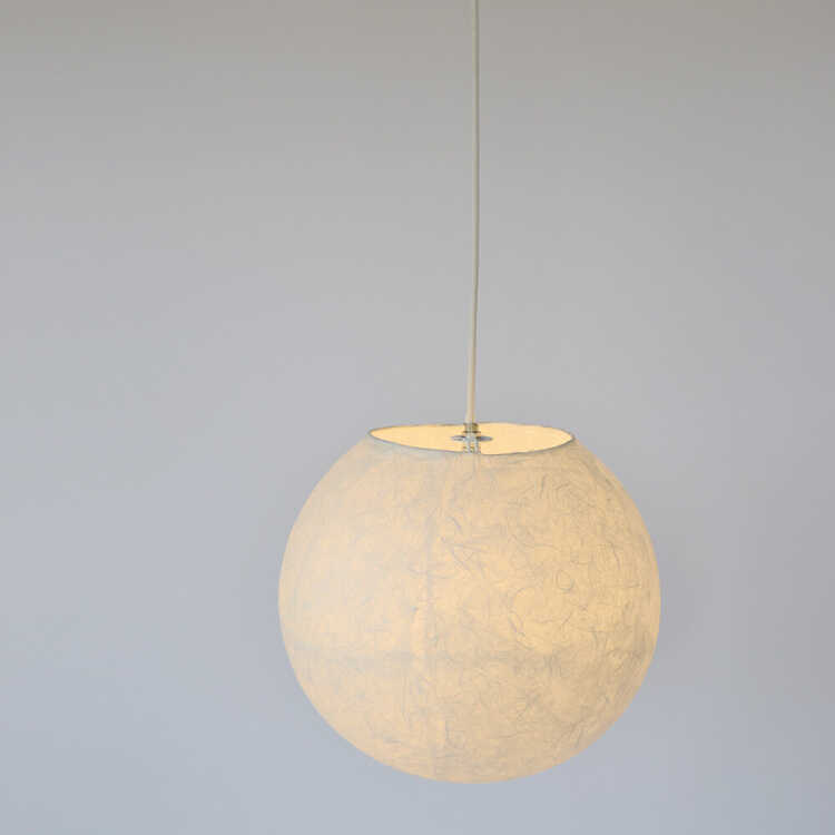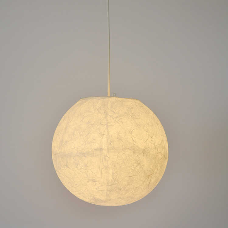 和紙を固めてシェードにしているため、分厚くぼんやりとした灯りで、柔らかい印象を与えます。