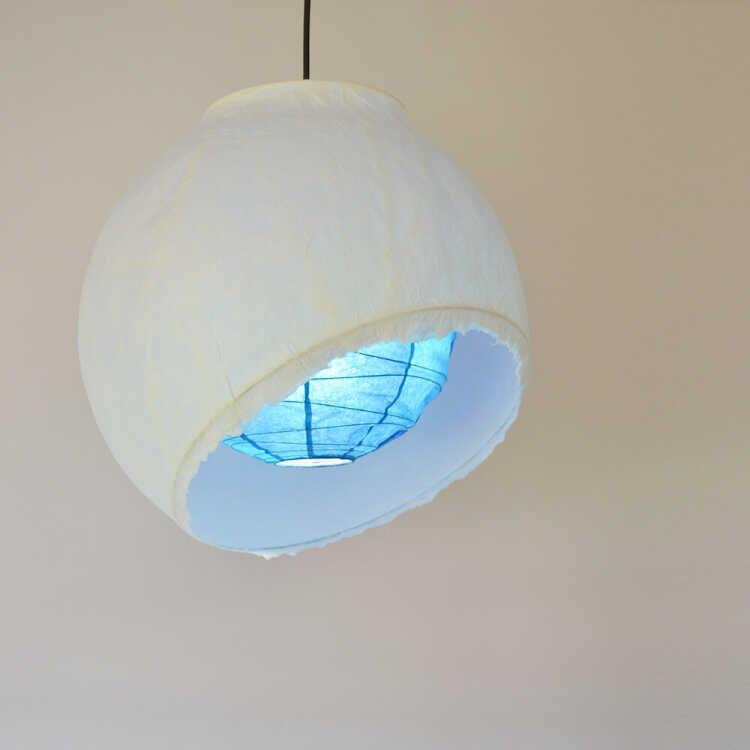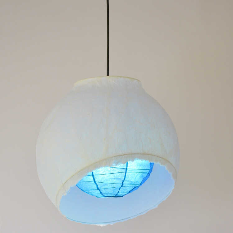 内側のシェードには深海をイメージして染めた和紙を使用し、明かりを灯すと幻想的な空間を演出します。