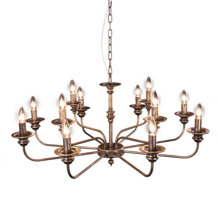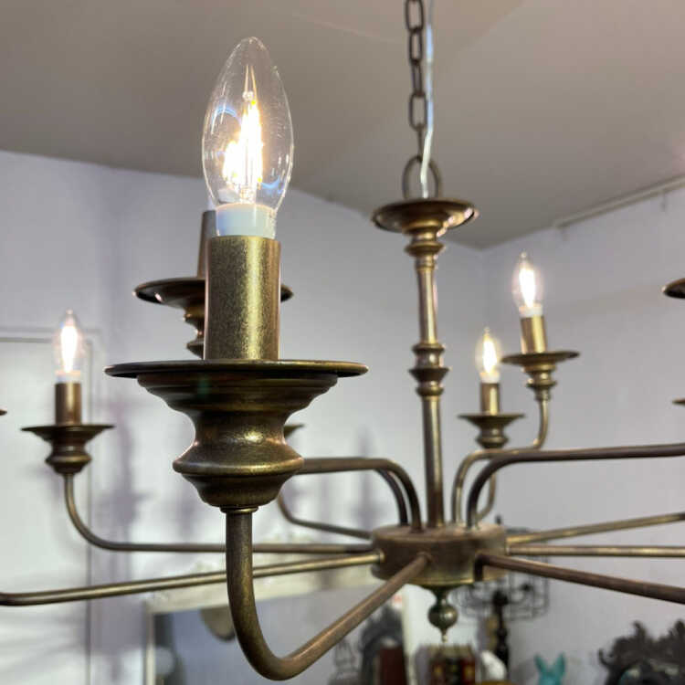 ラージサイズの12灯シャンデリア(アンティーク色/LED使用可能)