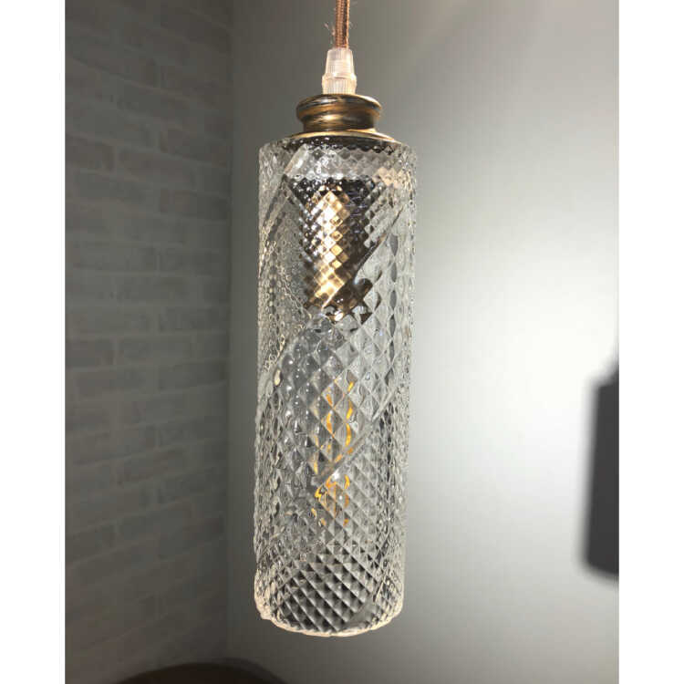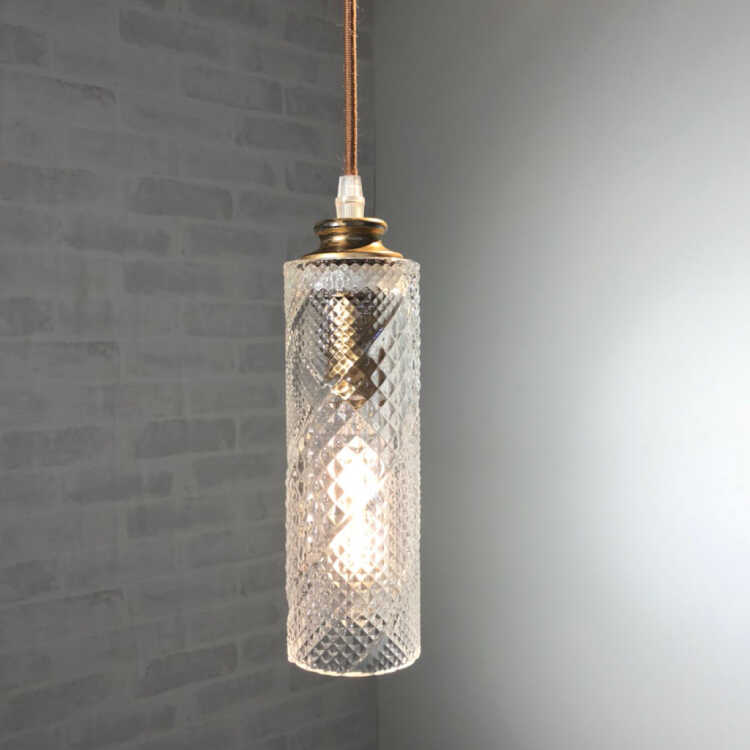 ダイニングに並べると素敵!カットガラスが美しい筒状のペンダントライト1灯。