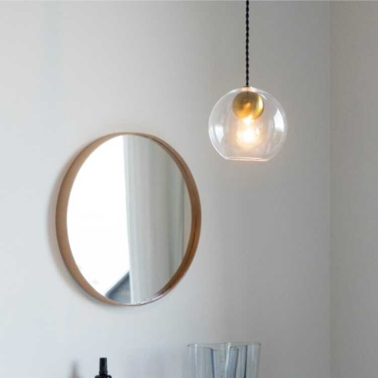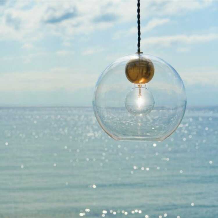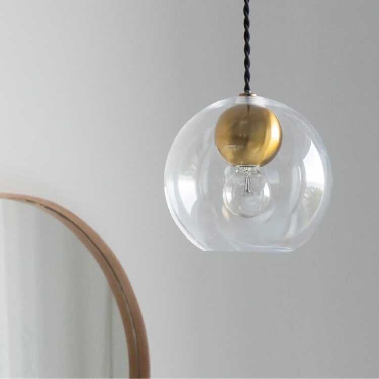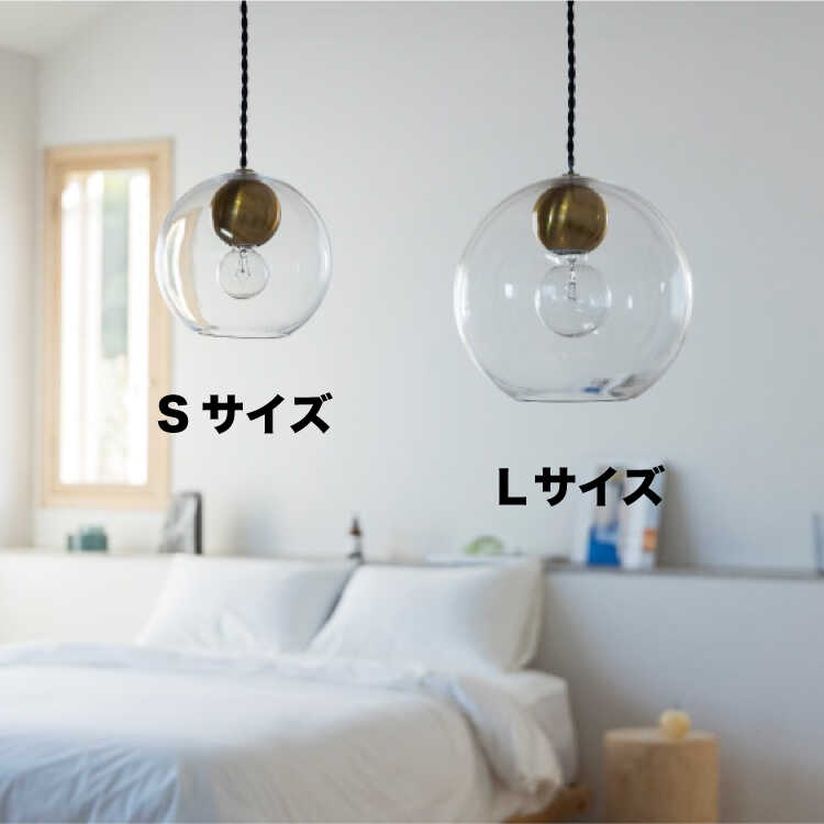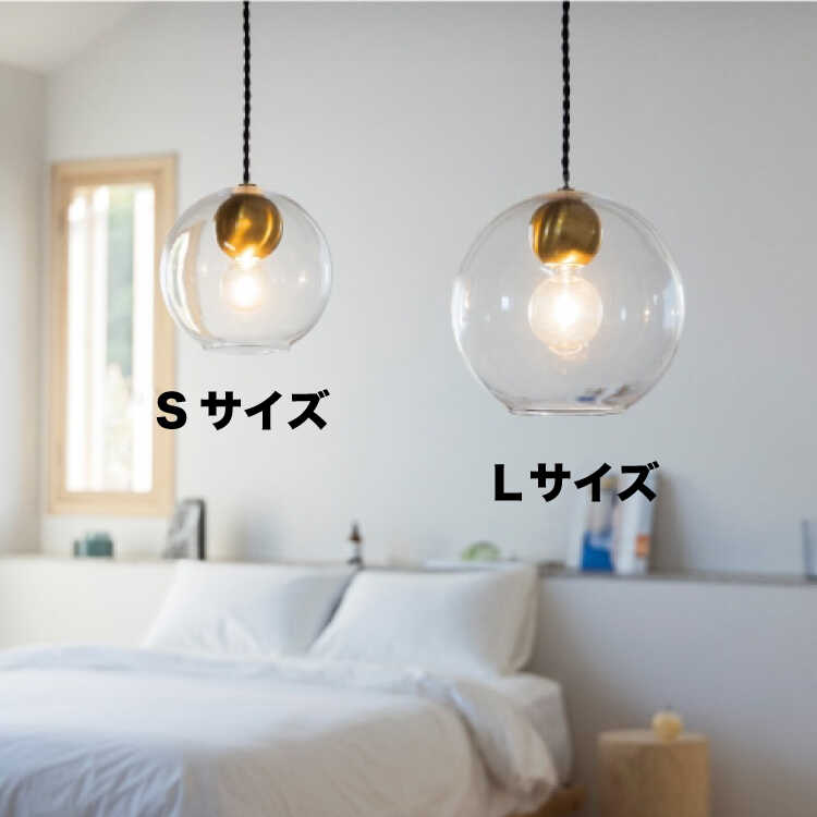 丸いガラスシェードの透明感溢れるペンダントライト1灯(Sサイズ・LED選べる)【販売終了】