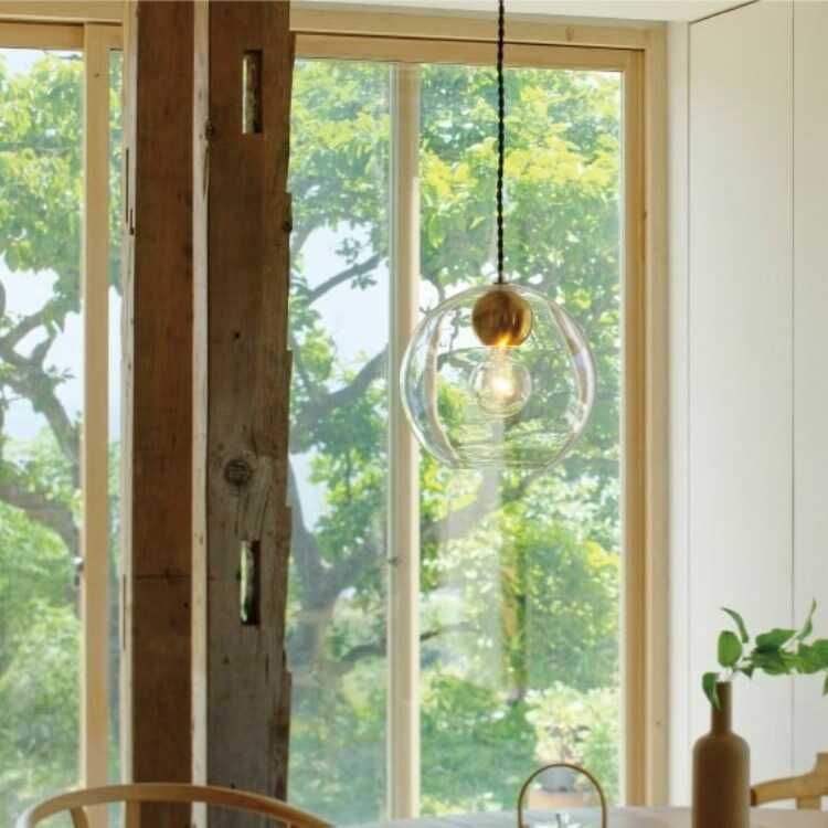 ガラスとソケット、電球の3つの「丸」を視覚的に組み合わせたペンダントライトです。