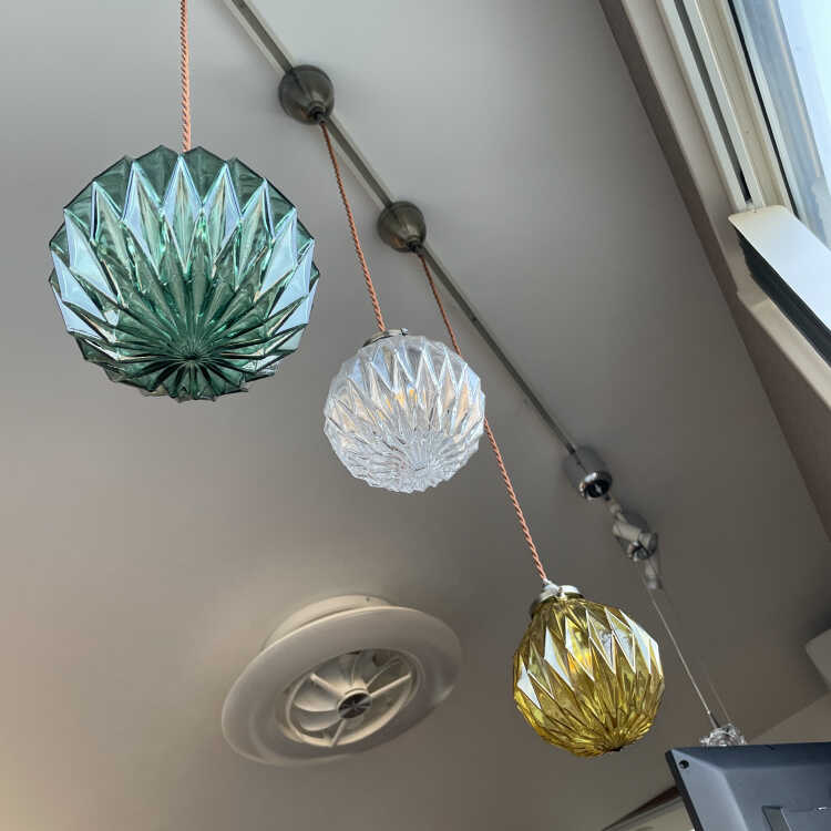 昼間の消灯時でもお洒落な雰囲気で、明るい場所…特に太陽光が当たる場所に吊るすとキラキラ輝いて綺麗です。