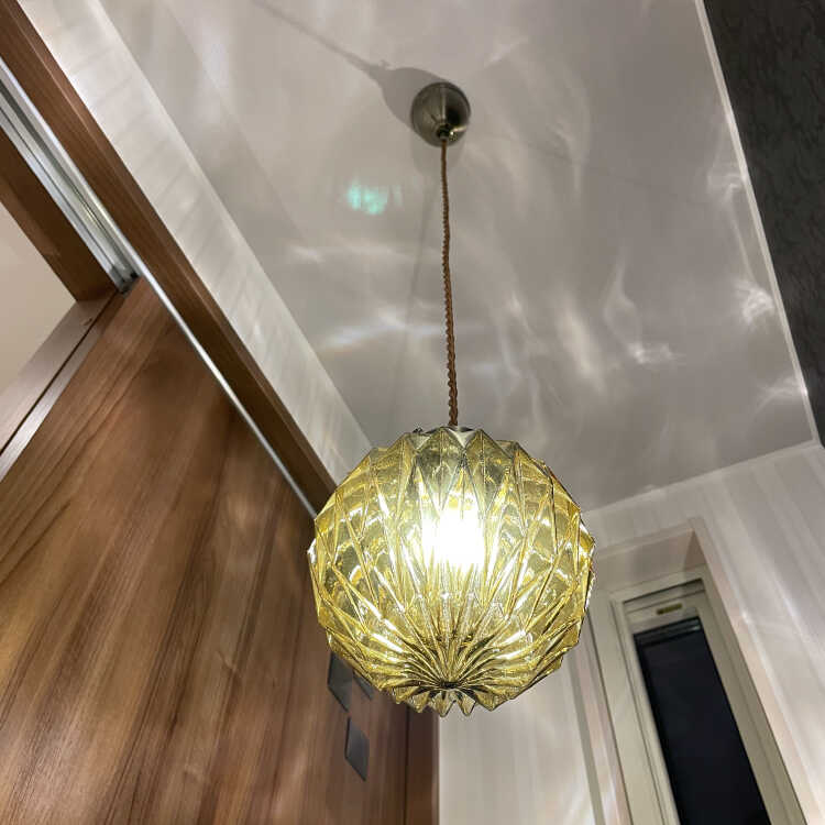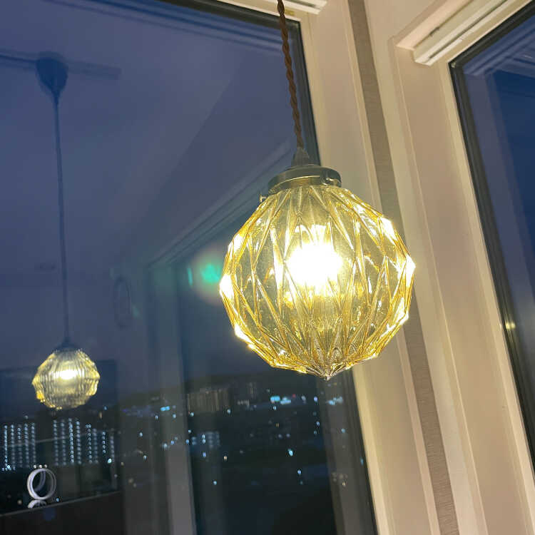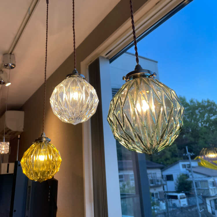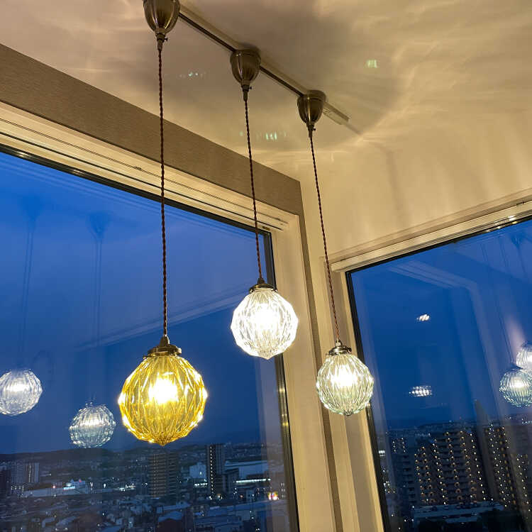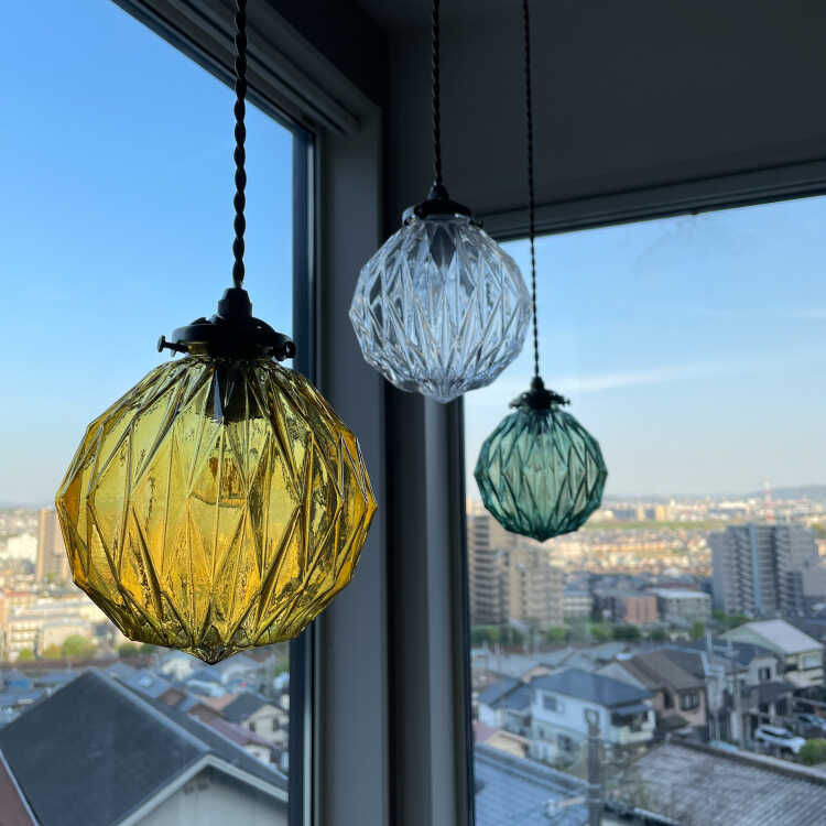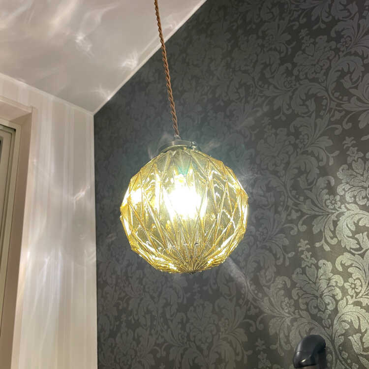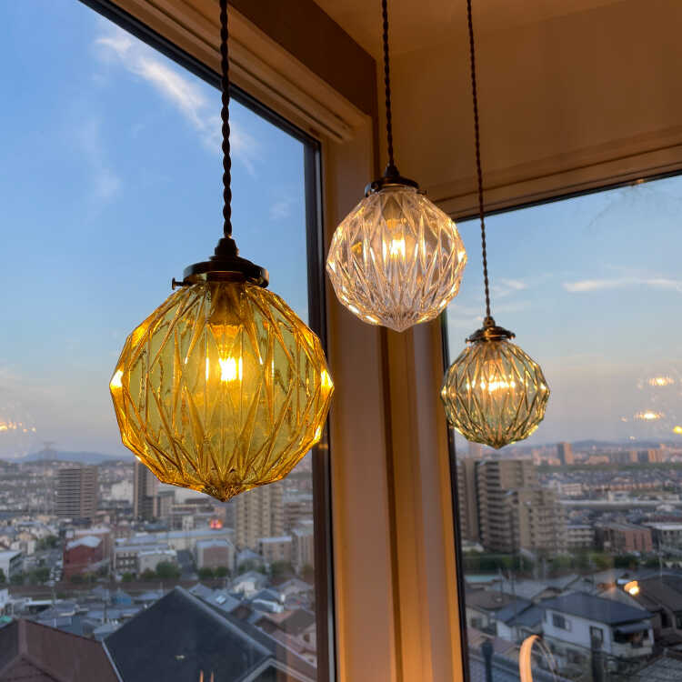 シェードの表面を凹凸のある形状にカット細工しているので、光が灯ると天井や壁などにキラキラと光が反射して幻想的です。