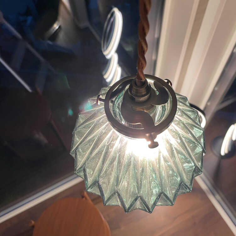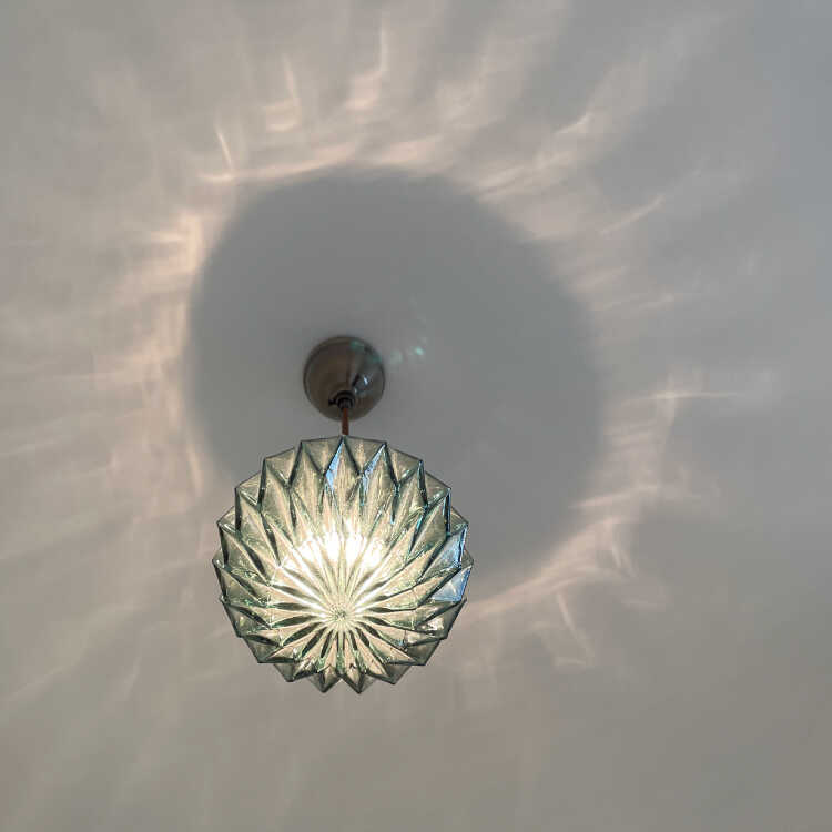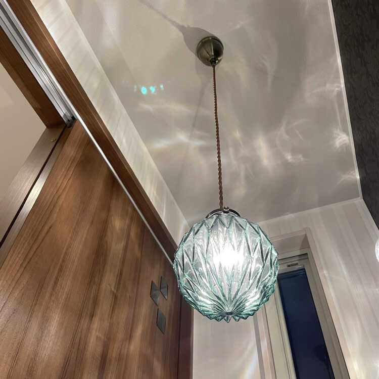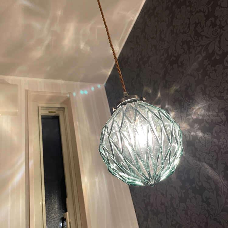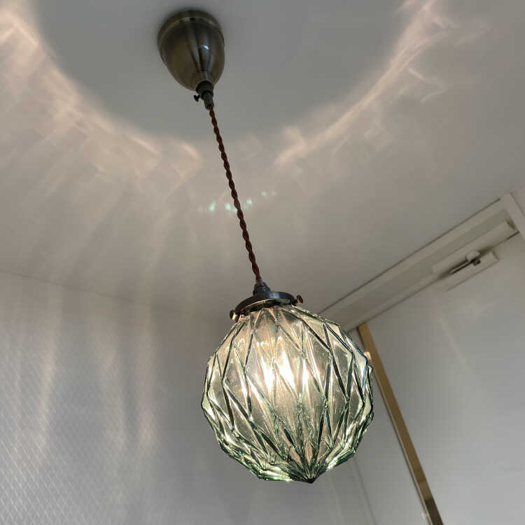 シェードの表面を凹凸のある形状にカット細工しているので、光が灯ると天井や壁などにキラキラと光が反射して幻想的です。