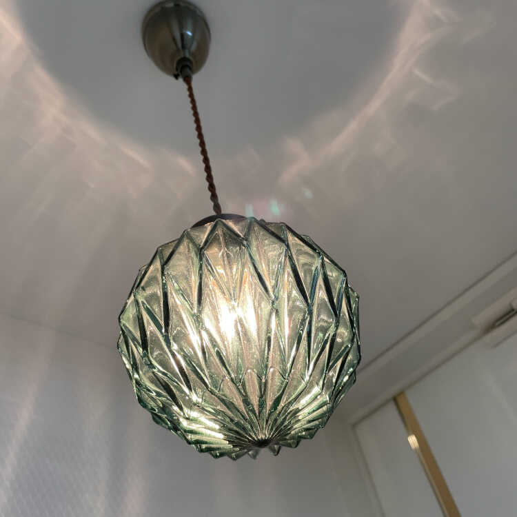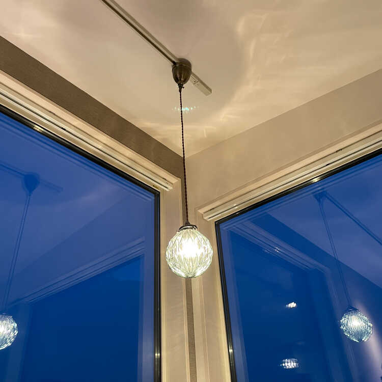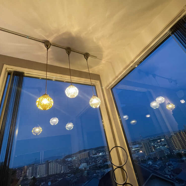 昼間の消灯時でもお洒落な雰囲気で、明るい場所…特に太陽光が当たる場所に吊るすとキラキラ輝いて綺麗です。